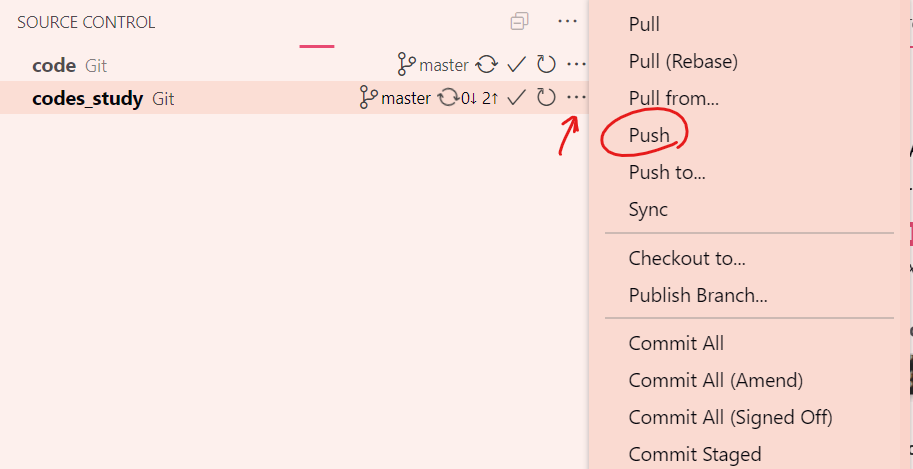 commit해서 ↑할게 생겼으면 옆에 ... 눌러서 push하면 된다