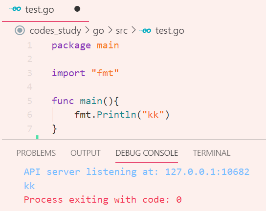 Python이랑 C는 terminal에서 해결되고 go는 debug console에 나옴