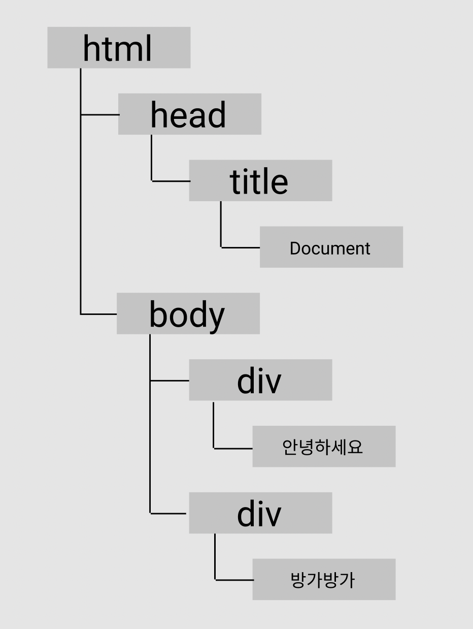 가장 최상단에 위치한 루트 태그인 html 태그는 트리의 루트가 되고, 하위 태그들은 자식 요소가 된다