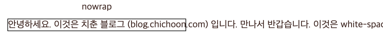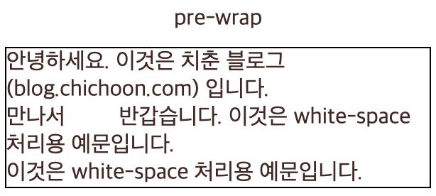 • pre-wrap과 차이를 주기 위해 예제의 ‘white-space’‘처리용 예문입니다’ 사이에 공백을 추가했다