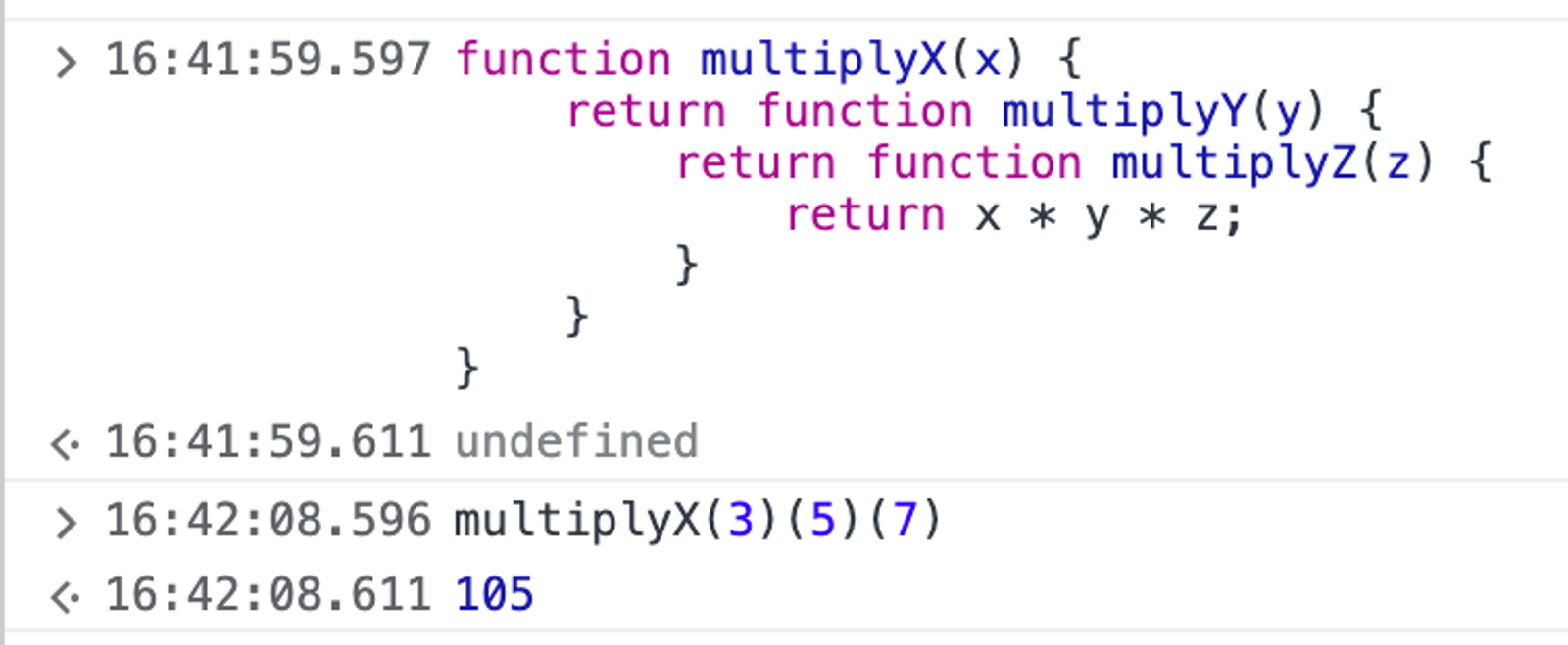function multiply = x => y => z => x * y * z; // 위와 같으면서 더욱 간결함
