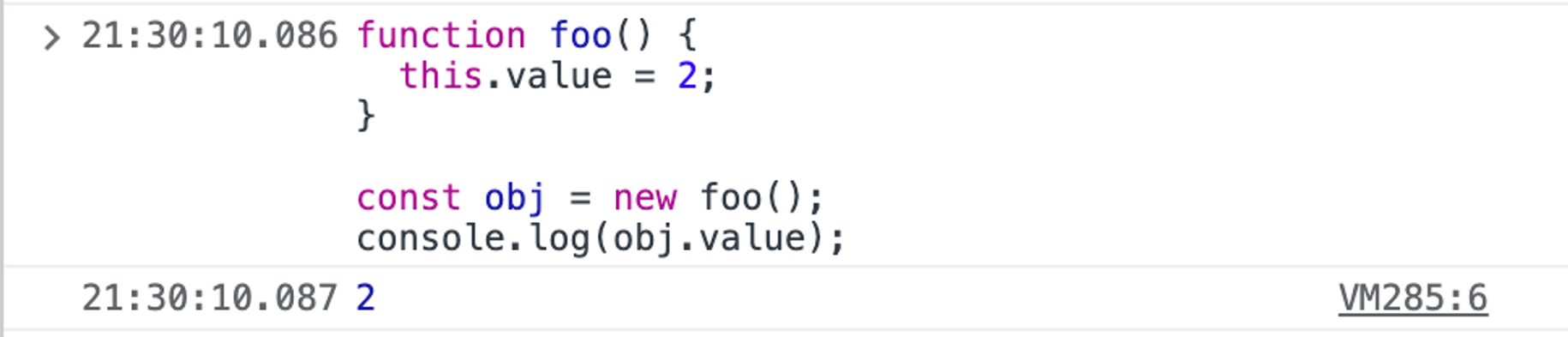 const obj = new foo();