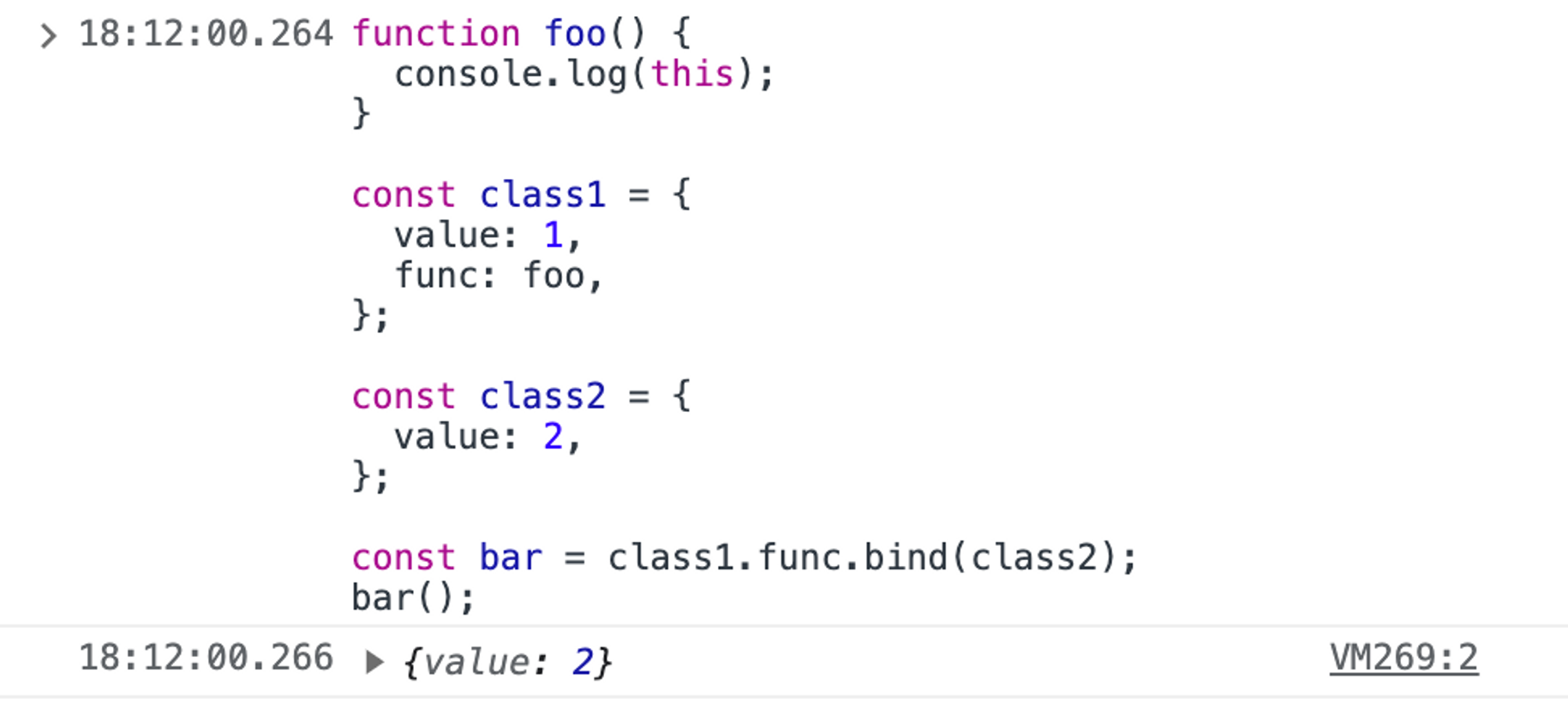 여기서 func의 this를 class2로 바꿔준 뒤 호출했으므로 value는 2가 된다