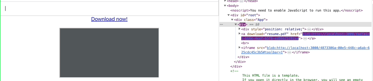 html을 열어보면 blob을 임시저장해서 해당 blob 파일을 저장하게끔 해주거나 iframe 태그를 통해 보여주는 것이긴 하다