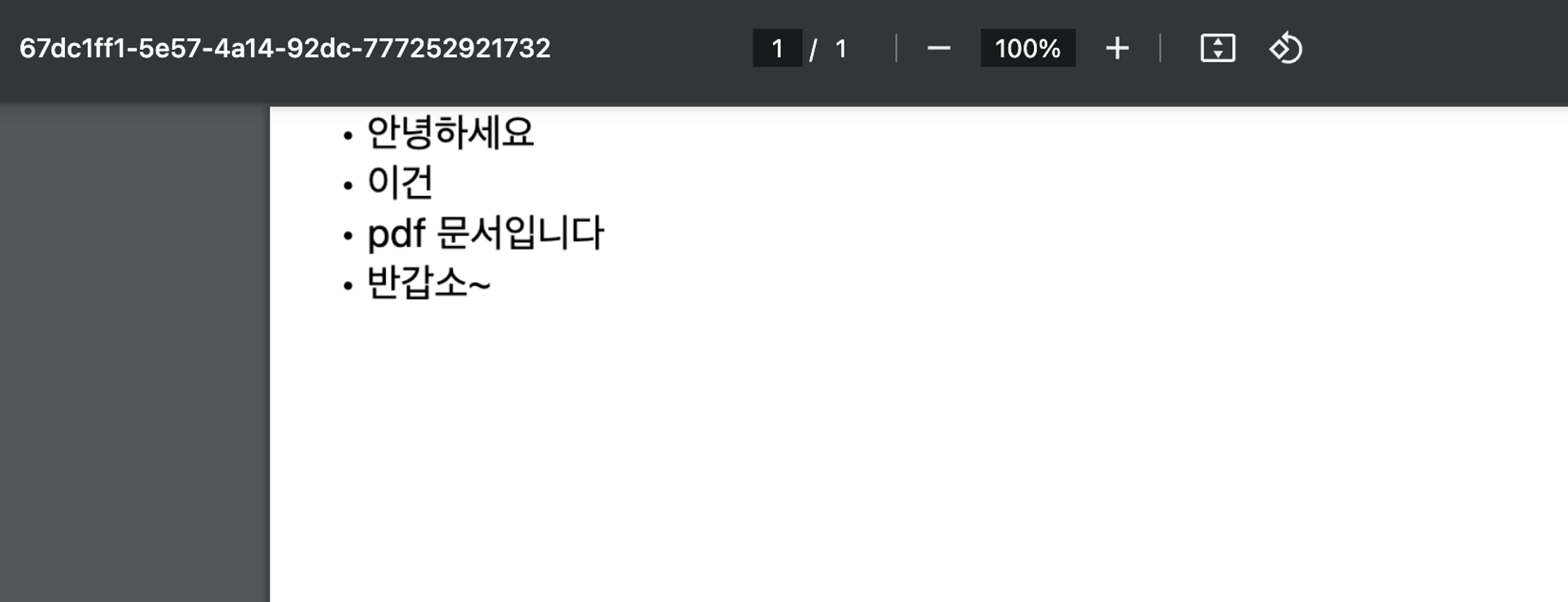 - react-pdf-html을 사용하면 되긴 하지만, 이 경우 한국어 지원이 되지 않고 문서 일부분이 깨질 수 있음