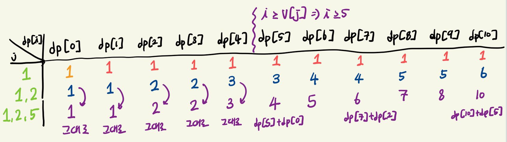 if (i >= v[j]) dp[i] = dp[i] + dp[i - v[j]];